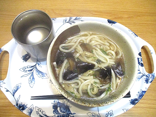 えのき、水菜、なす南蛮入りうどん、この後ヨーグルト。