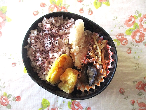 赤魚の唐揚げ、かぼちゃ天、えび天、きんぴらごぼう、なす南蛮。