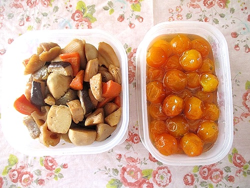 筑前煮と金柑の甘露煮です。