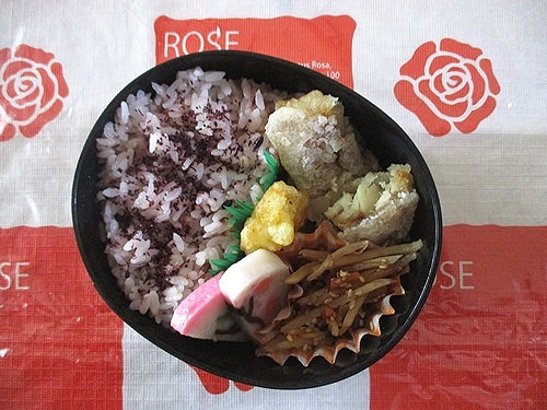 赤魚の唐揚げ、えび天、蒲鉾、きんぴらごぼう。