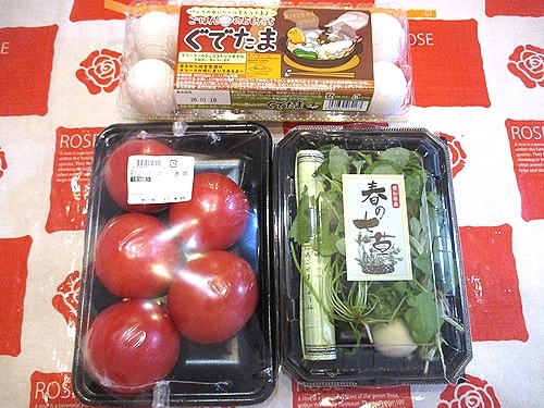 卵、トマト、七草、以上で税込み1397円なり~。