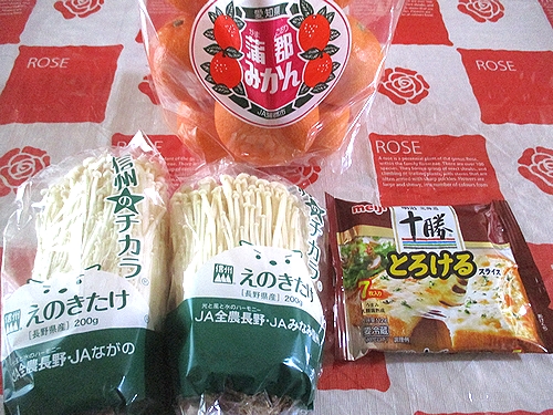 みかん、えのき茸、とろけるチーズ、以上で税込み1344円でした。