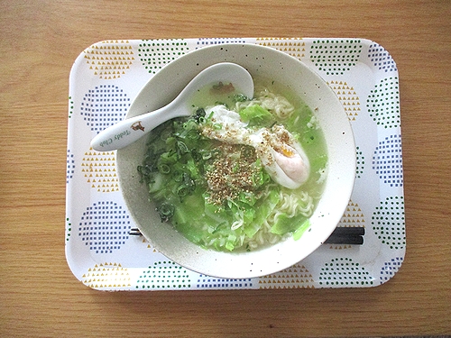 キャベツ、ネギ、玉子入り塩ラーメン。