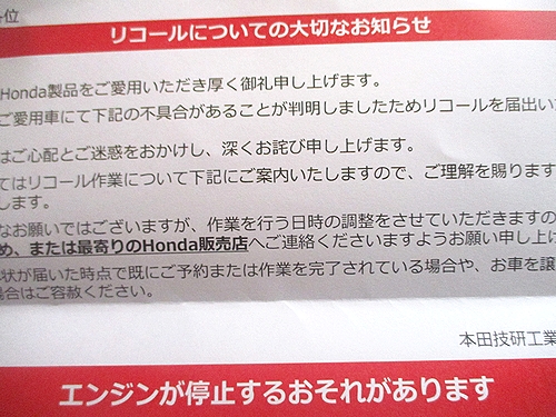 リコールの案内が来た話。