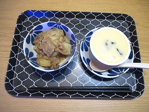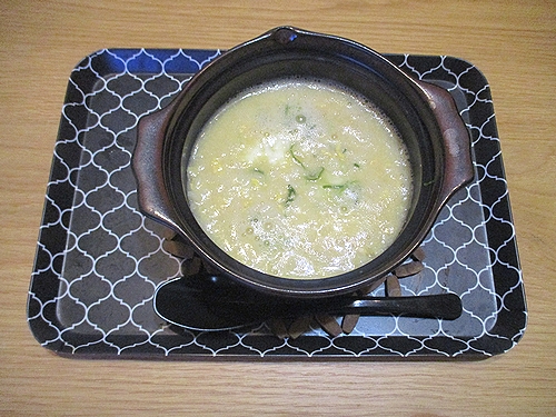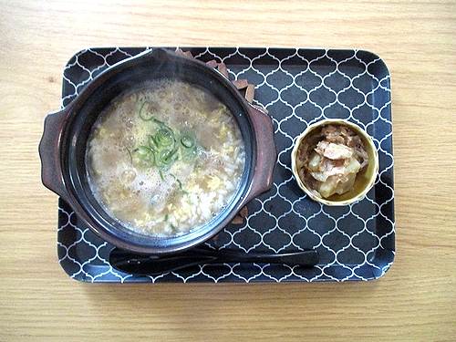 玉子雑炊、ツナじゃが玉ねぎのうま煮。