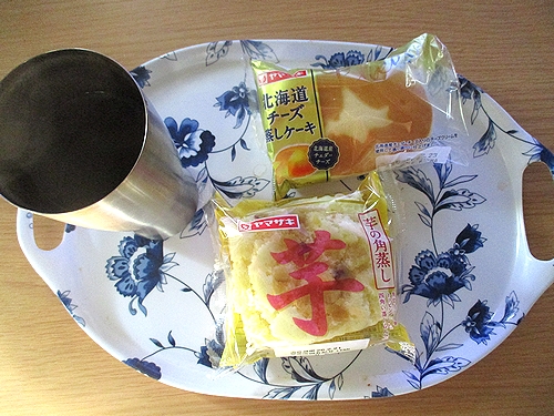 菓子パン2個、紅茶。