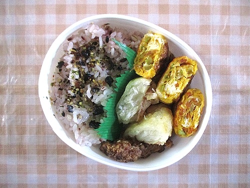 ブロッコリーの芯と人参のきんぴら入り玉子焼き、赤魚の唐揚げ、鶏むね肉の唐揚げ。