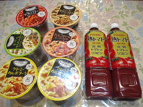 スープデリ6個、トマトジュース2本、以上で税込み1028円でした。